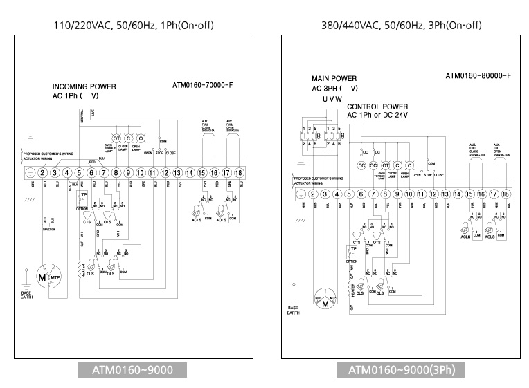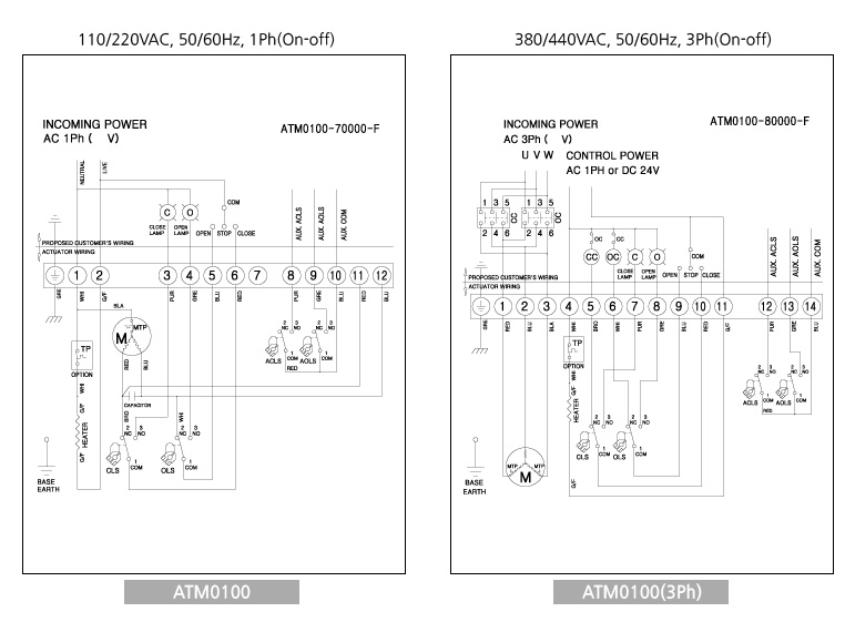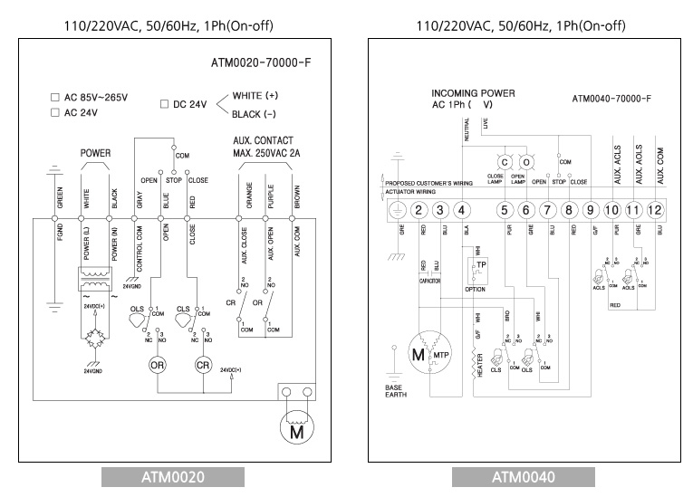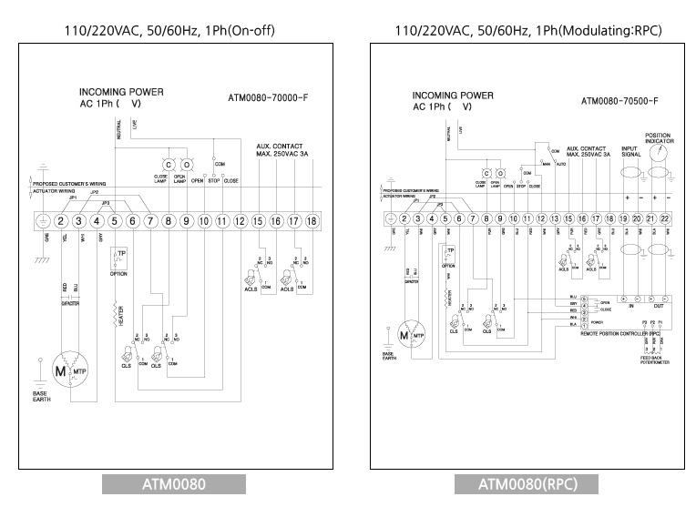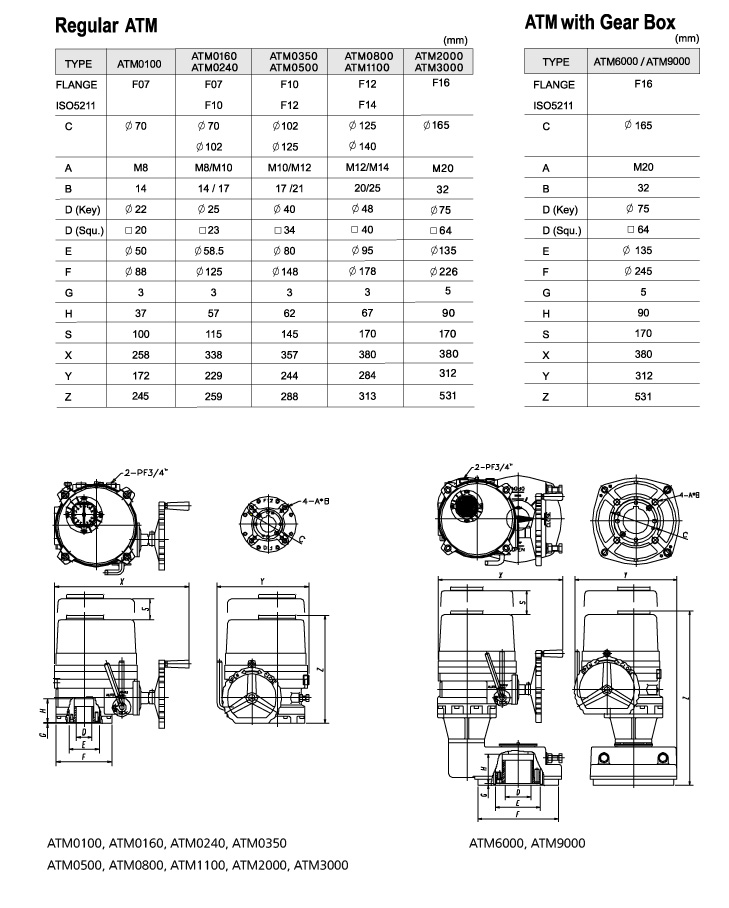 | Torque switches | 2 each for open and close(SPDT 250VAC/10A rating except for ATM0020/0040/0080/0100) |