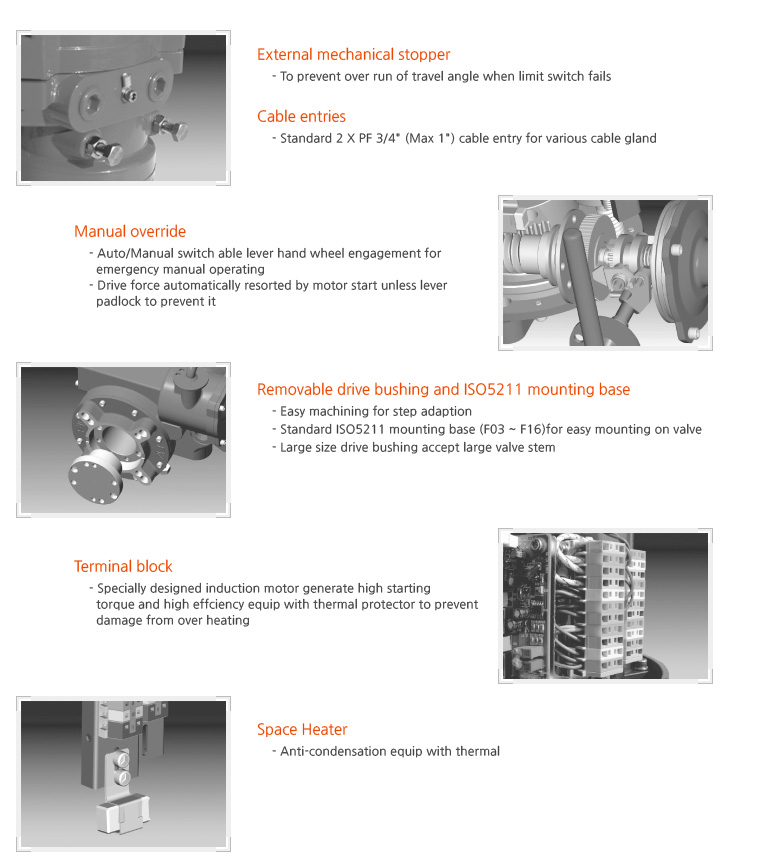 | Ambient temperature | Basic actuator : -20℃ ~ +70℃ except for ATM0020 : -10℃ ~ +65℃ c/w control option : -10℃ ~ +60℃ |