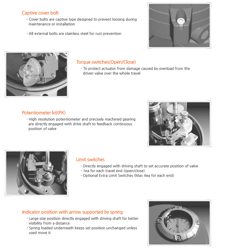 | PK | Potentiometer Kit(output signal:0~1kohm) High resolution potentiometer and precisely machined gearing are directly engaged with drive shaft to feedback continuous position of valve |