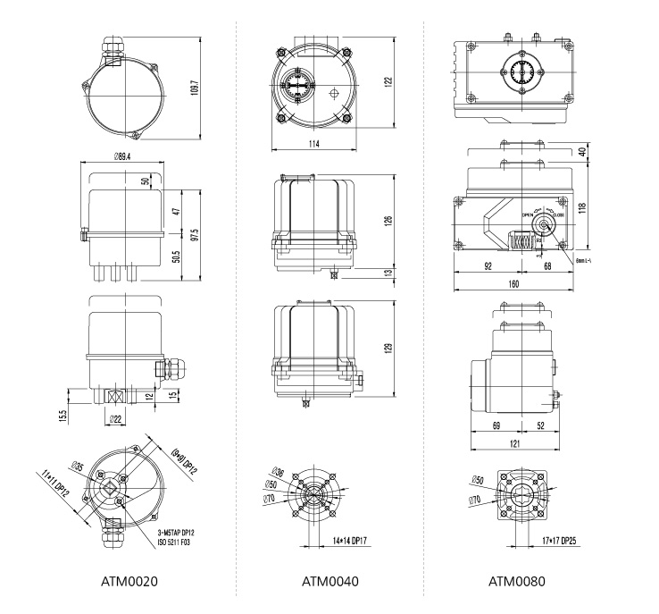 | Manual override | De-clutchable (except for ATM0020 : N/A, ATM0040 : by shaft, ATM0080 : by wrench) |