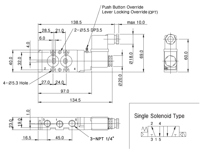 | Pneumatic Connections | PT 1/4 or NPT 1/4 |